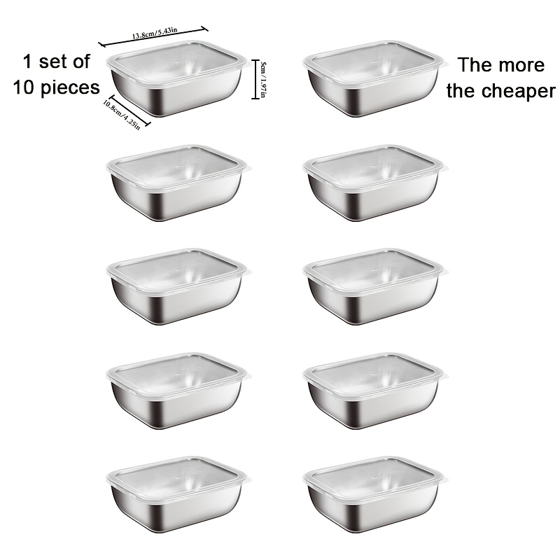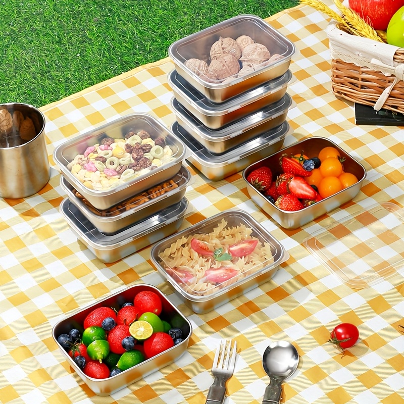 10pcs Stainless Steel Square Food Storage Containers with Flip-Top Lids - Reusable, Dishwasher Safe, Perfect for Fruits, Vegetables, and Meal Prep - Ideal for Kitchen and Outdoor Use, Outdoor Food Storage|Checkered Tablecloth|Durable Kitchenware