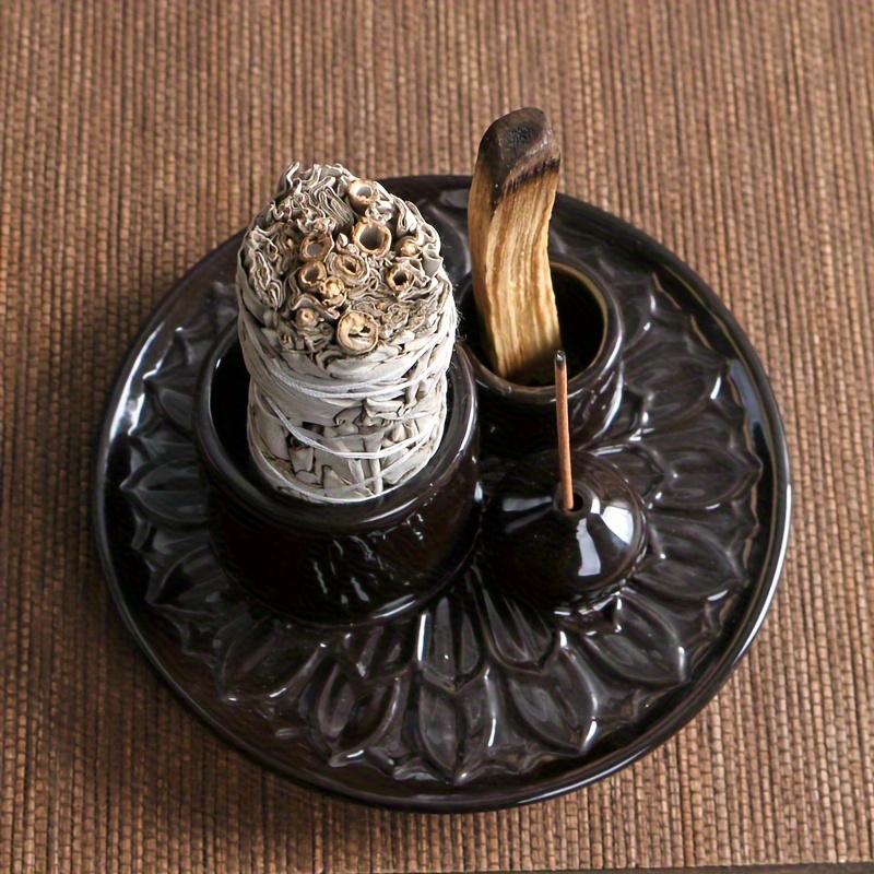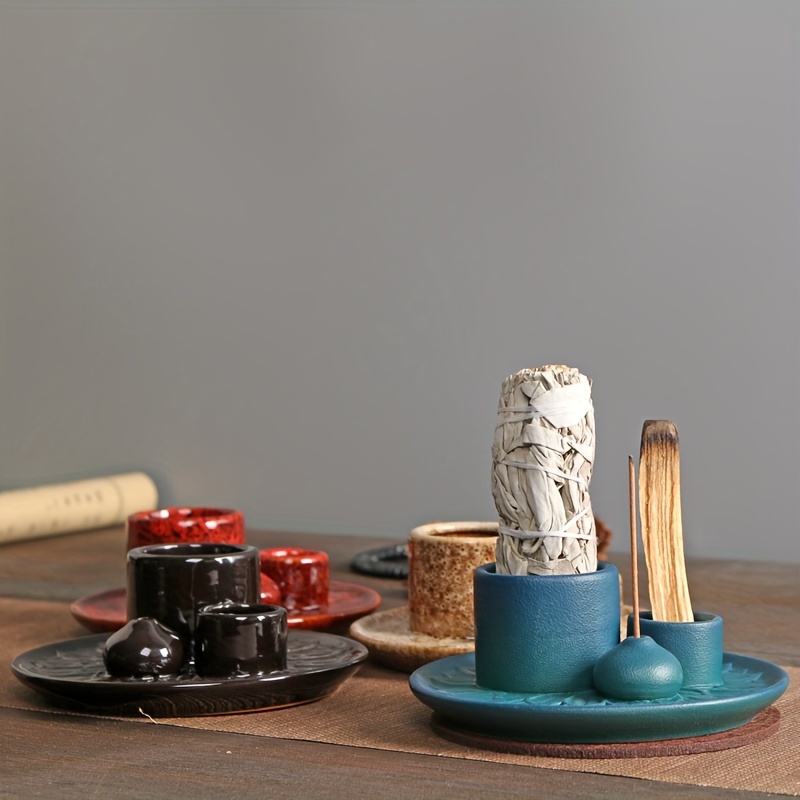 1pc 4-in-1 Ceramic Incense Burner Holder – Palo Santo & Sage Smudge Stand with Stick & Candle Holder, Elegant Home Decor for Meditation, Yoga, and Aromatherapy Relaxation, Home Relaxation | Rustic Ceramic Holder | Terracotta Design, Incense Holder