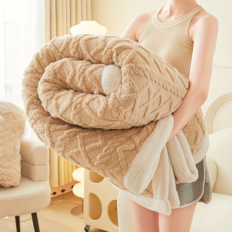 1pc Double-Sided Fleece Bed Blanket, Autumn And Winter Thickened Sofa Blanket, Air Conditioning Blanket, Suitable For All Seasons, Christmas present