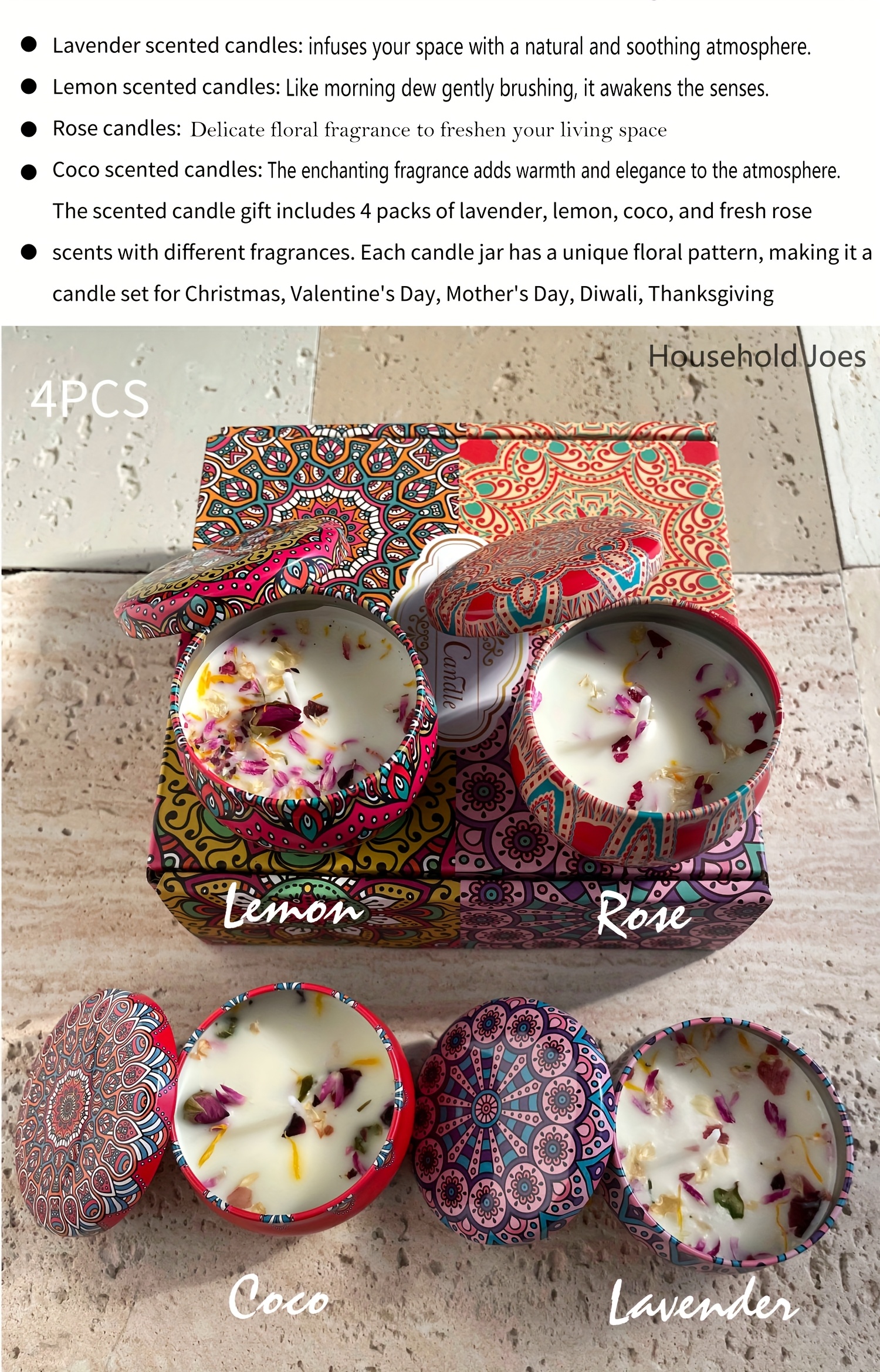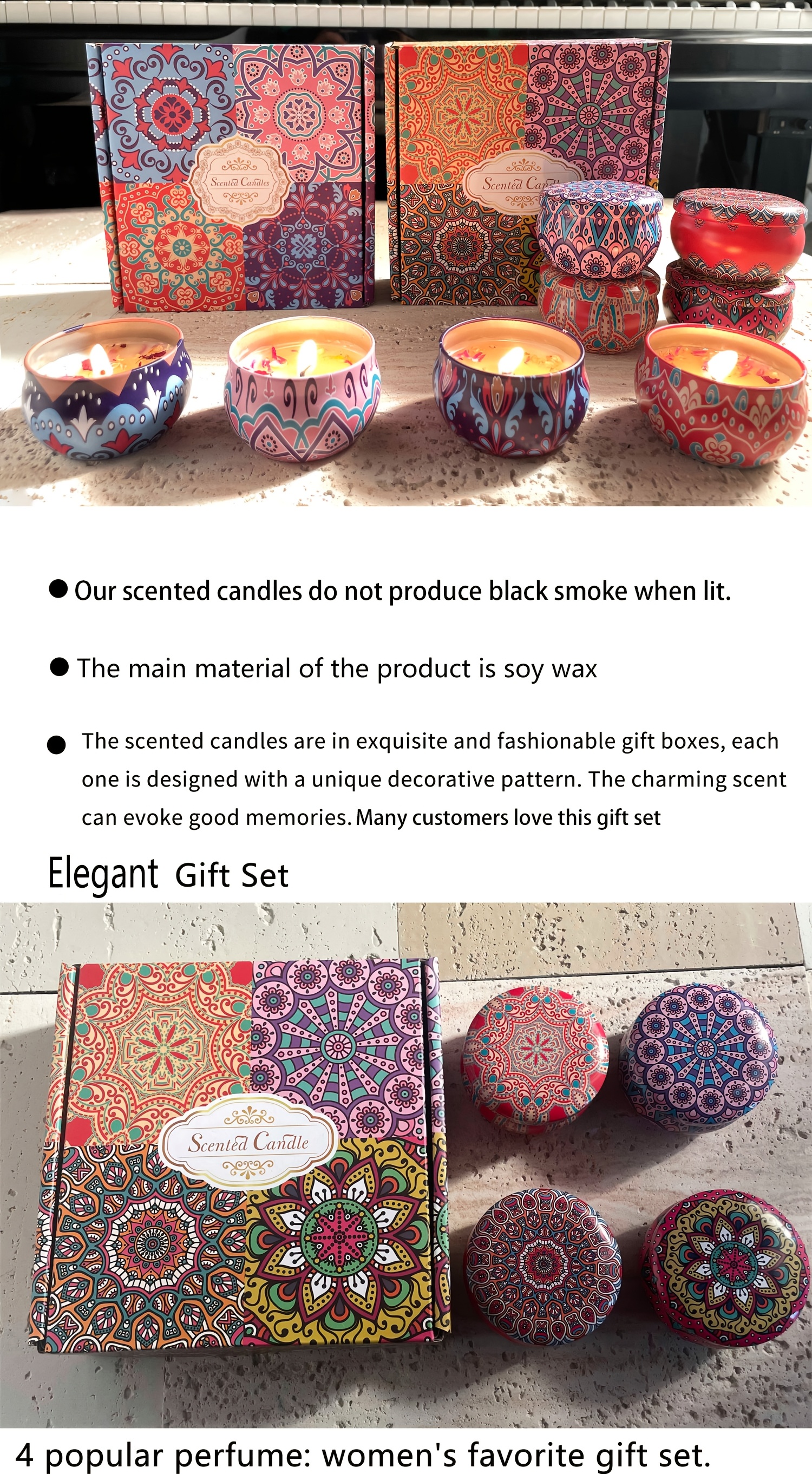 1pc Or 4pcs Bohemian Mandala Style Scented Candles Gift Set for Women, Featuring Four Different Fragrances. Ideal for Women'S Birthdays, Valentine'S Day, Weddings, Anniversaries, Mother'S Day, Thanksgiving And Other Holiday Gifts. Suitable for Spa