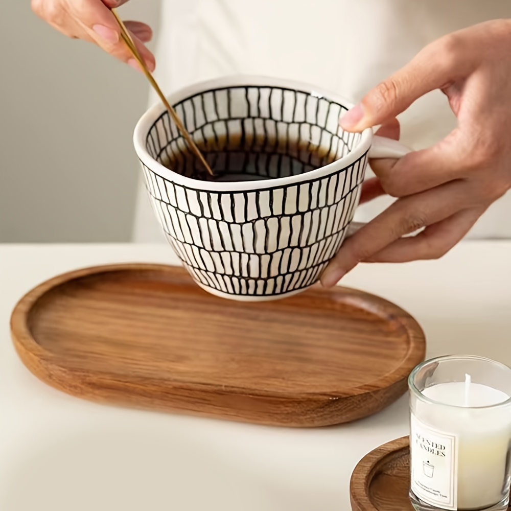 1pc Oval Japanese-Style Wooden Coaster Tray - Multipurpose Solid Wood Serving Platter for Breakfast, Bread, Desserts - Ideal for Home, Kitchen, Restaurant Use
