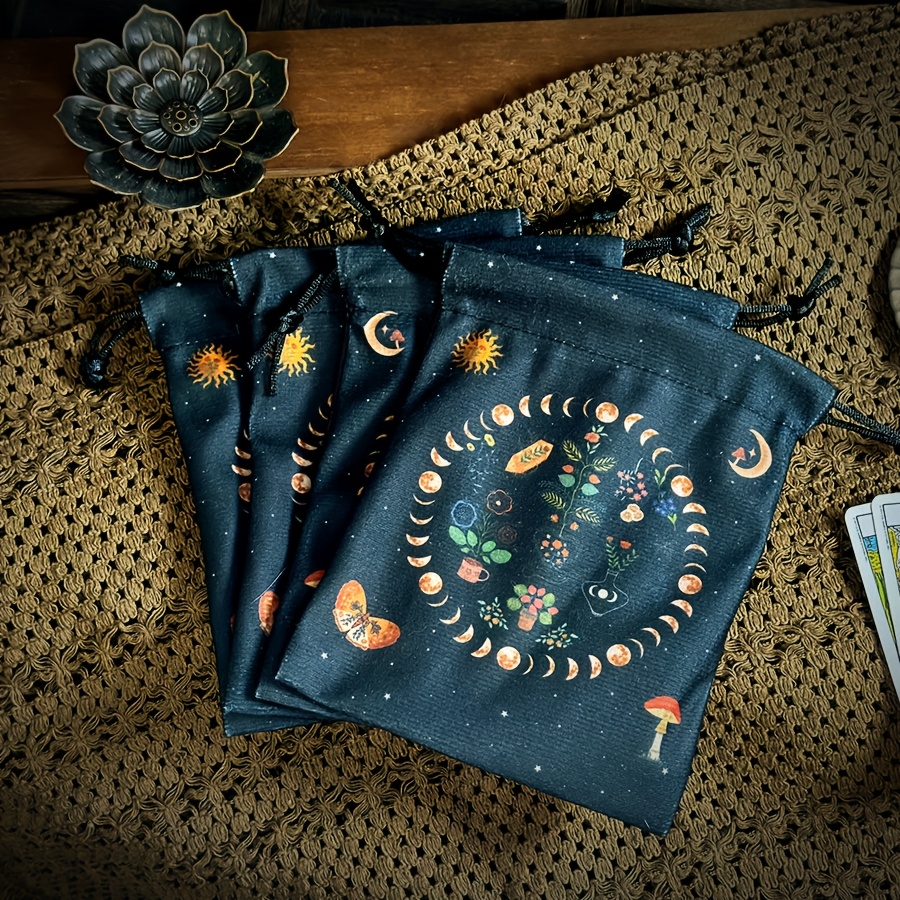 1pc Tarot Pouch, Astrological Celestial Moon Phase Designs, Polyester, Multipurpose Storage Bag, Small, Women'S Change Purse, Non-Prop Banknotes, No Feathers, with Tarot Runes Constellation Witch Divination Accessories for Women, for Halloween