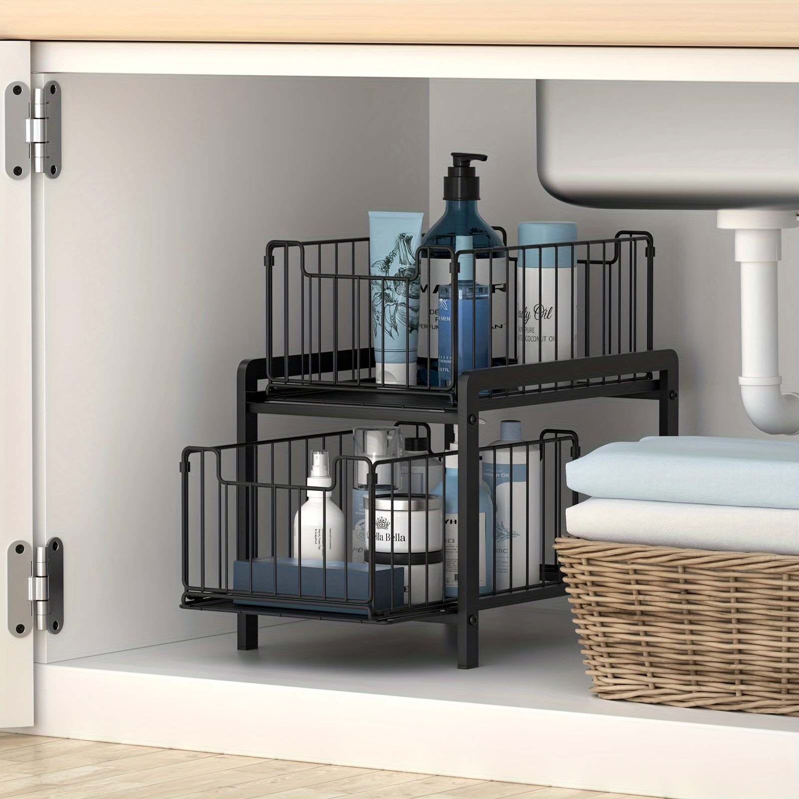 Effortless Sliding Drawer: Our Under Sink Organizer Features A Smooth Sliding Bottom Drawer, Providing A Convenient Way To Access And Store Items Even In Compact Spaces. Perfect For Maximizing Storage Efficiency Under Sinks Or In Cabinets.