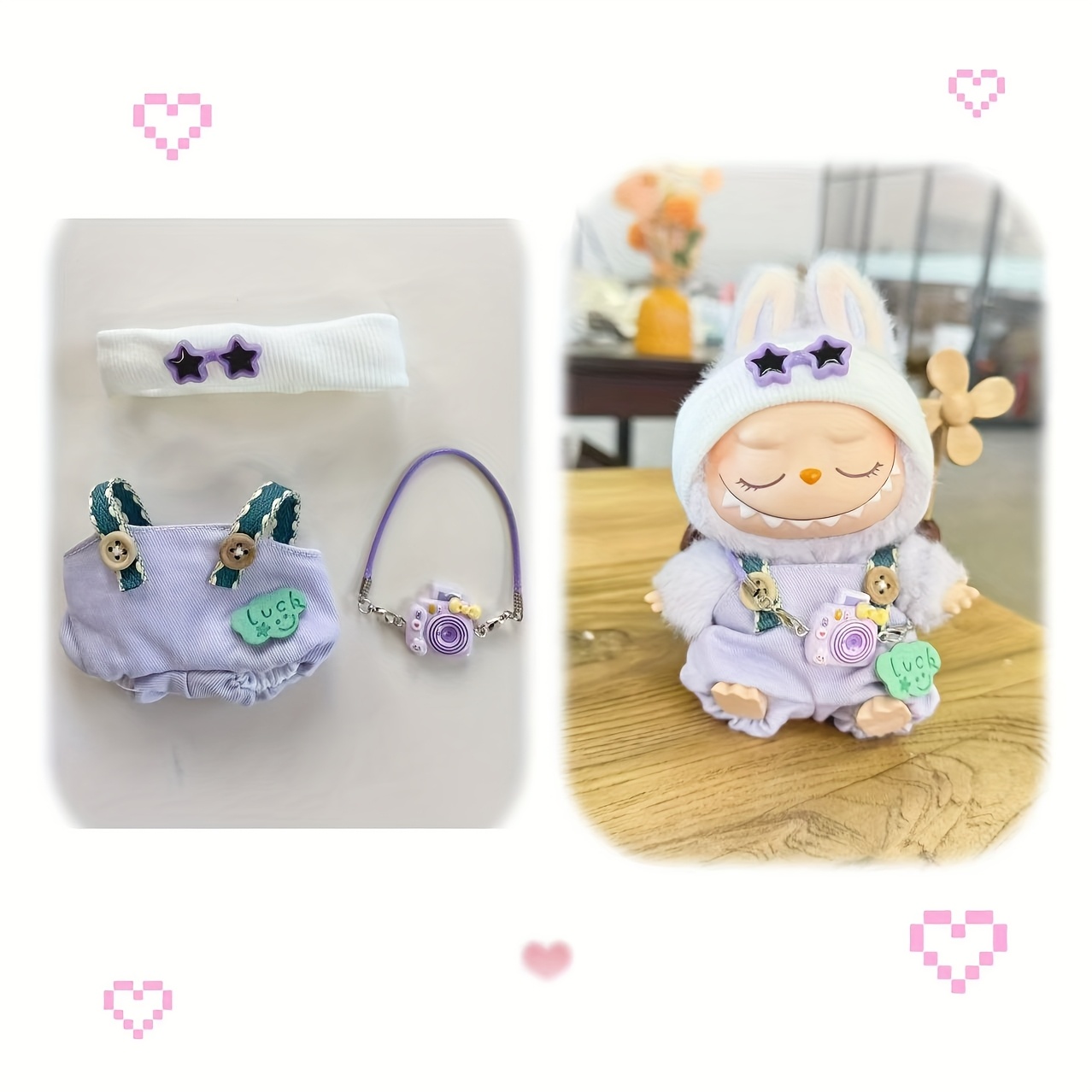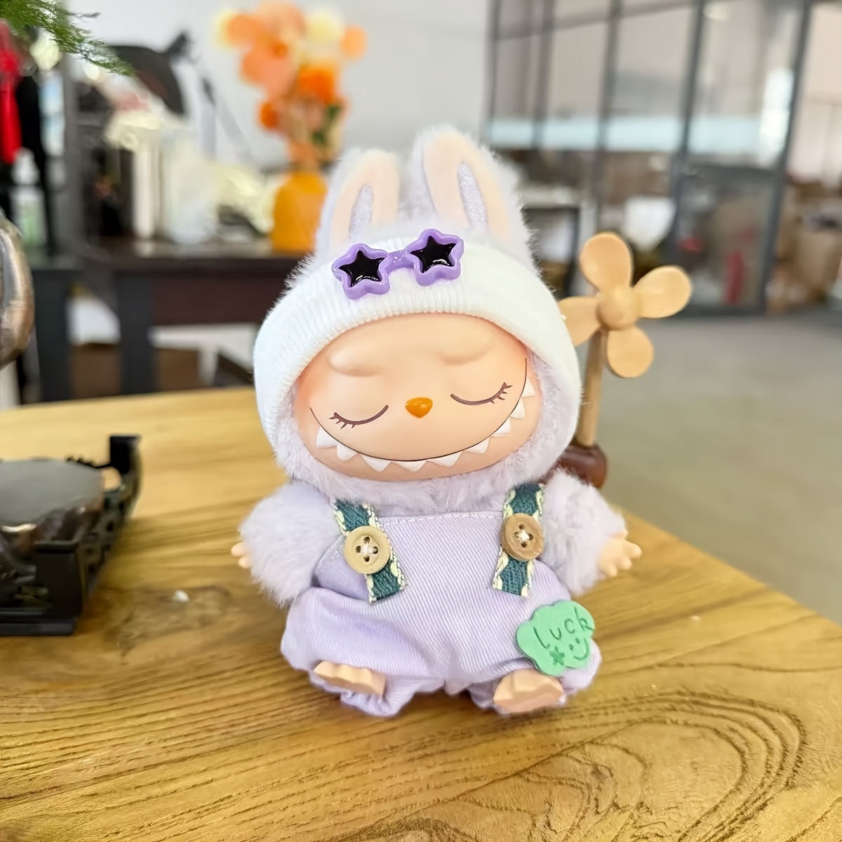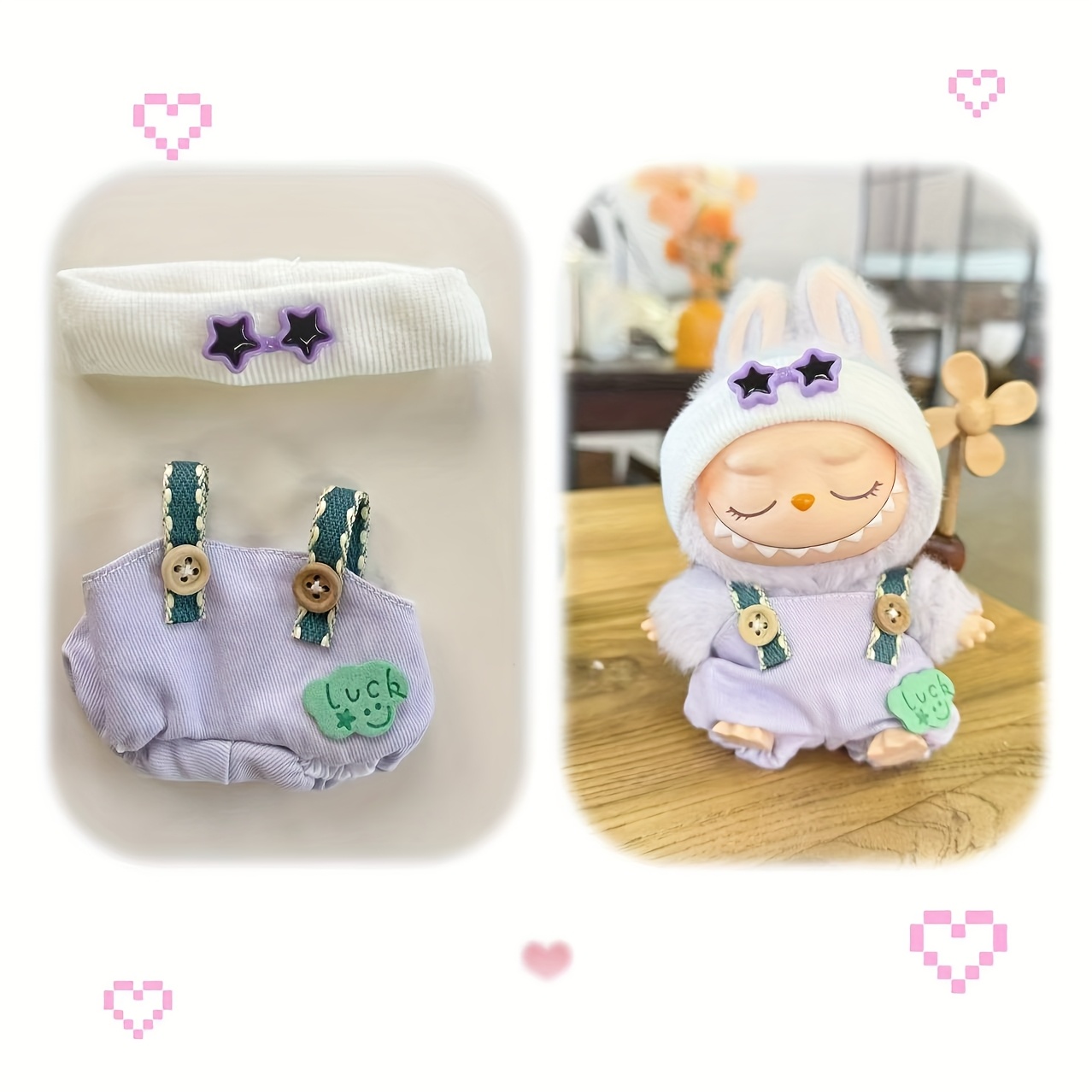 2025 New Labubu Doll Pendant Trendy Clothing Star Eye Overalls + Hat Set Doll Accessories Can Be Replaced Cute Gift Box Holiday Gift Wear-Resistant Holiday Atmosphere Clothes Suitable for Labubu