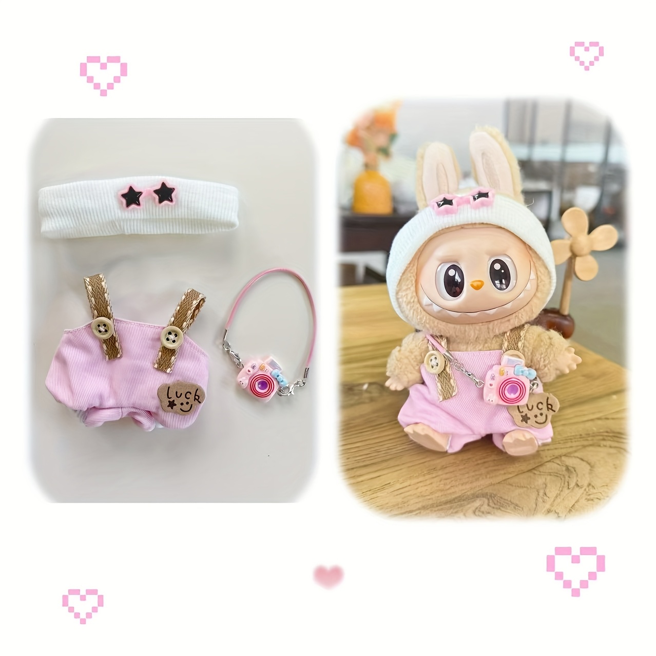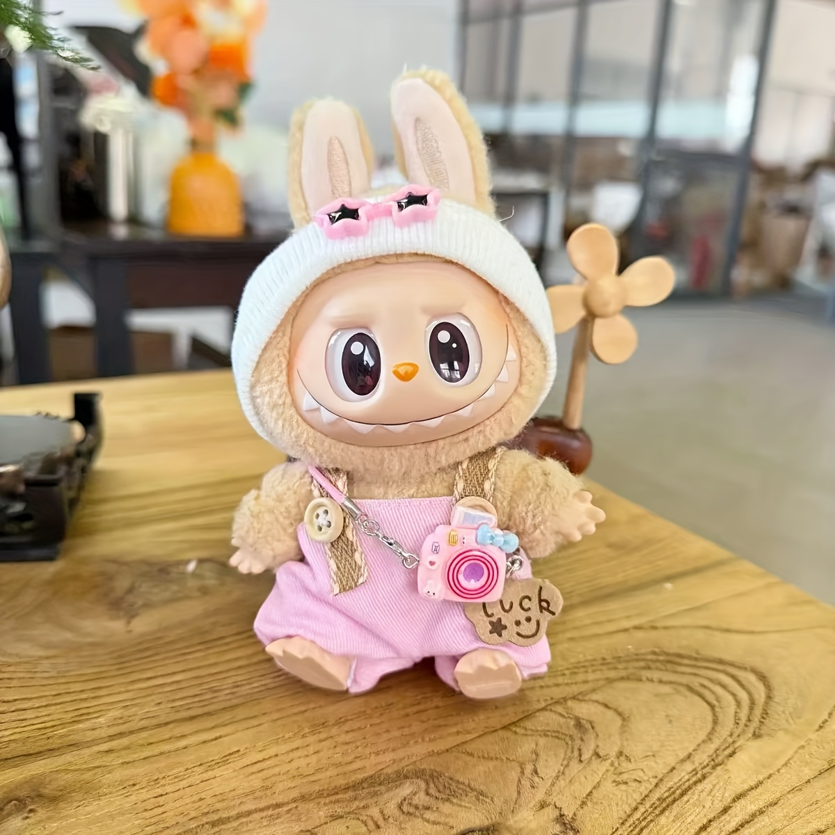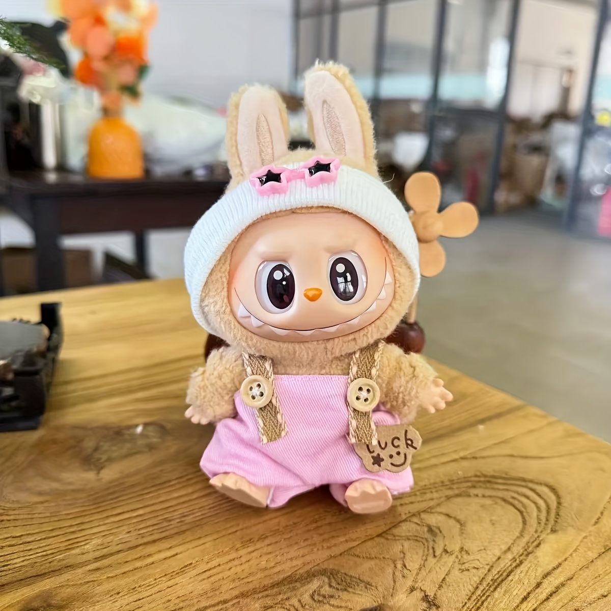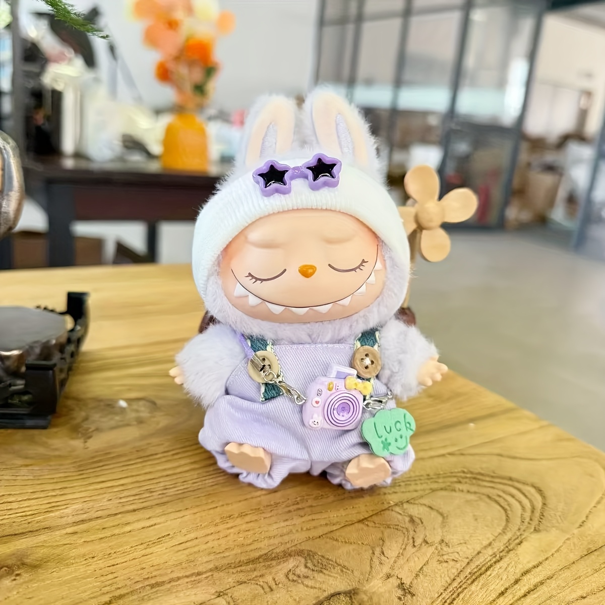 2025 New Labubu Doll Pendant Trendy Clothing Star Eye Overalls + Hat Set Doll Accessories Can Be Replaced Cute Gift Box Holiday Gift Wear-Resistant Holiday Atmosphere Clothes Suitable for Labubu