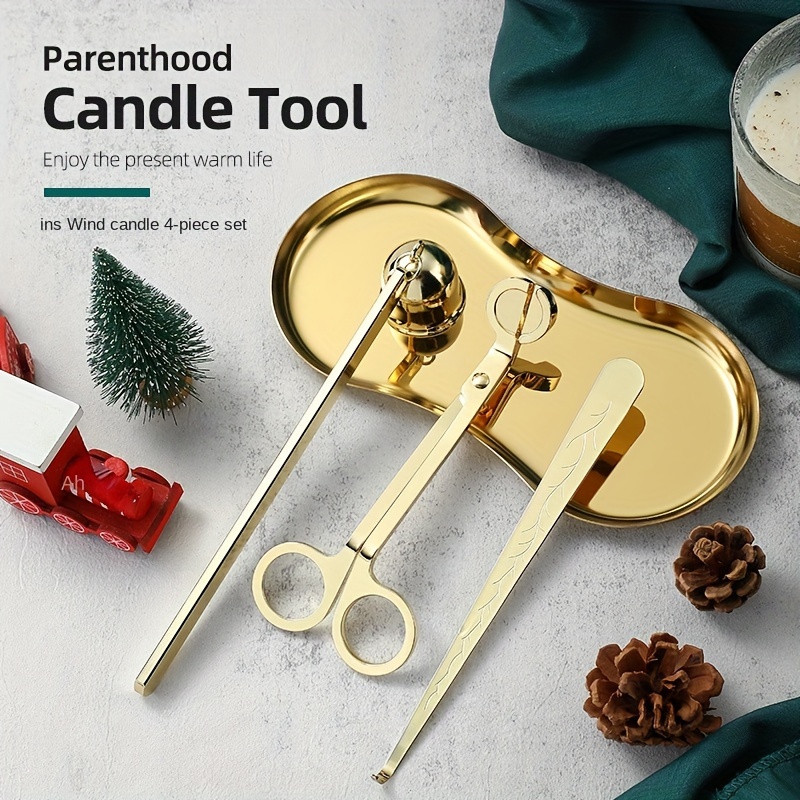 3/4pcs Small Aromatherapy Candle Tool Set, Candle Snuffer Tool Set, Stainless Steel Candle Scissors, Wick Trimmer, Candle Extinguisher Cover, Candle Wick Hook, Candle Accessories