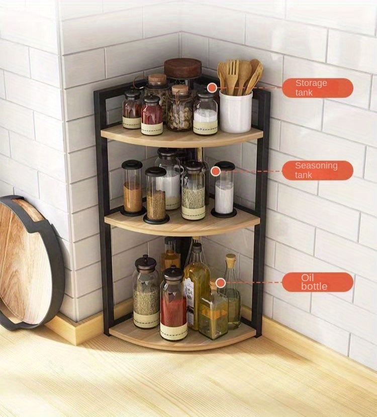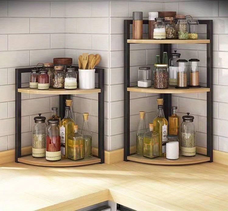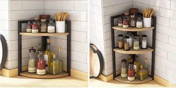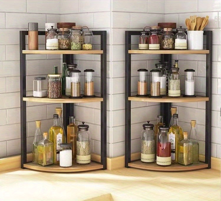 3-Tier Rustic Cast Iron Countertop Storage Rack - 1PC Space-Saving Floor-Standing Shelf for Home Organization, Bathroom Shelf with Metal Pipe