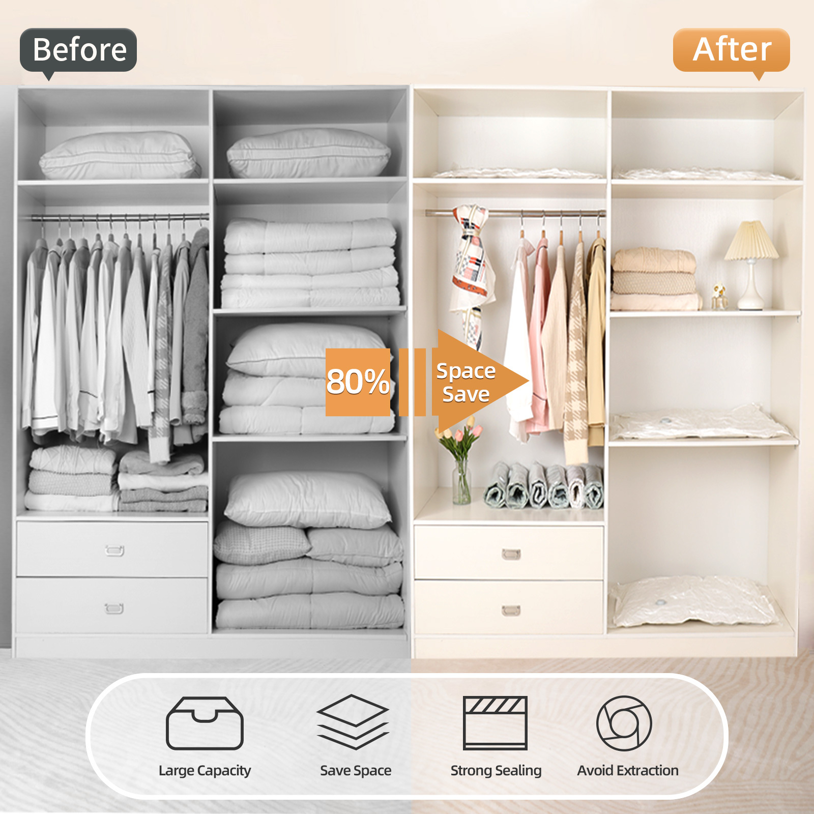 4-Pack Thick Vacuum Storage Bags - Space-Saving, Zippered Organizer for Clothes, Blankets, Quilts - Durable Plastic, Ideal for Bedroom & Travel, Bedroom Organizers And Storage