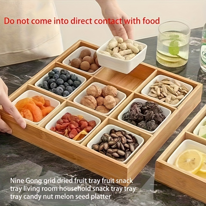 Wooden Snack Tray with Separate Compartments for Nuts, Seeds, and Dried Fruits - Ideal for Home, Office, or Party Use, Party Snack Platter | Modern Wooden Tray | Durable Wooden Tray