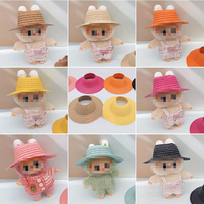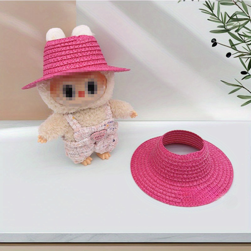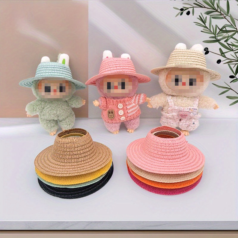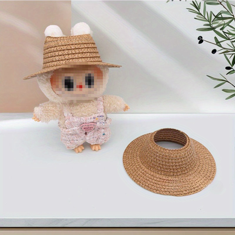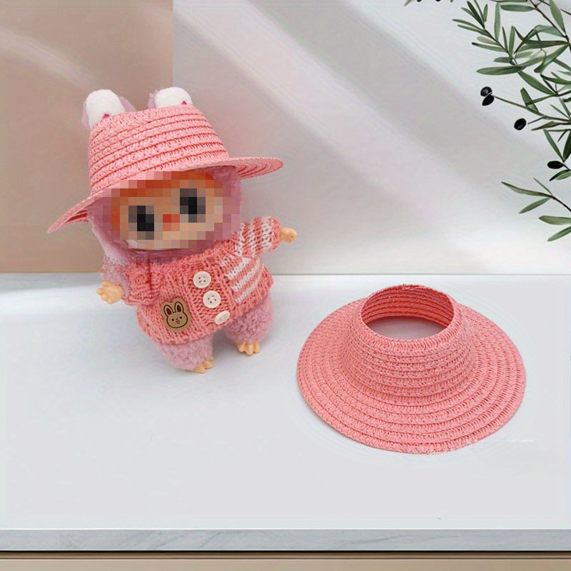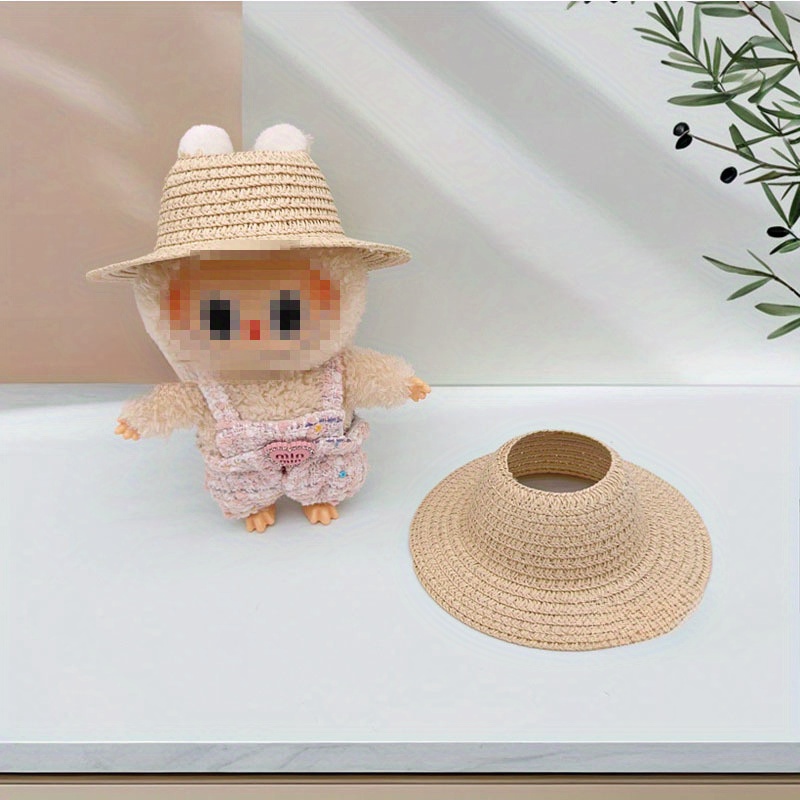Bubu-Style Open-Top Straw Hat, Woven Party Accessory for Rural-Themed Outfits, with Interchangeable Decorations for Dolls.