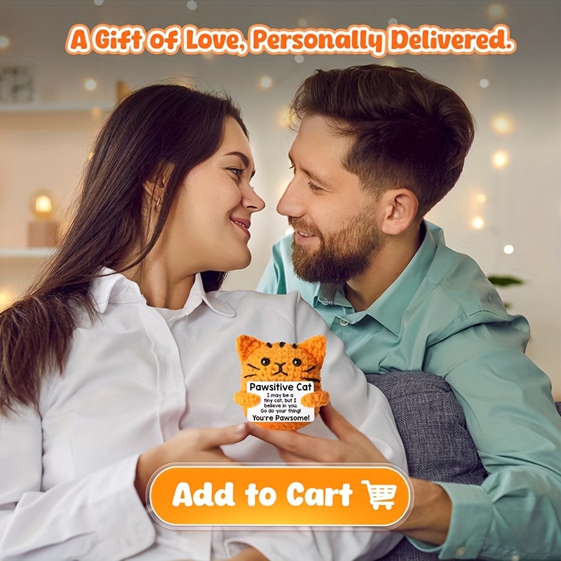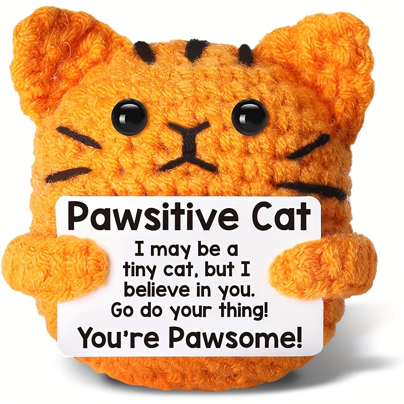 Cat Crochet DIY Kit-Emotional Support Handmade Gift with Positive Quote-Heartwarming Gift for Graduation, Best Friends & Cat Lovers