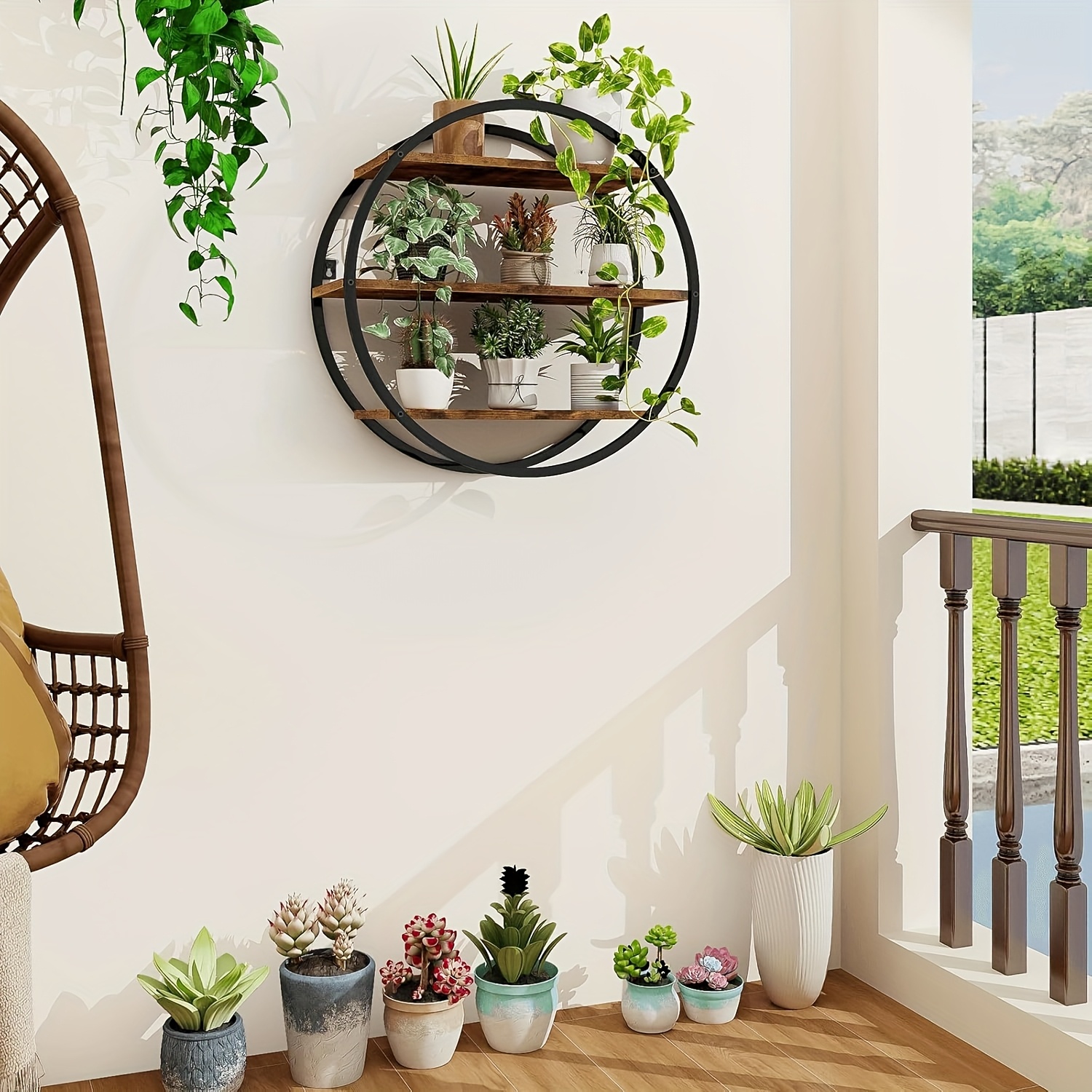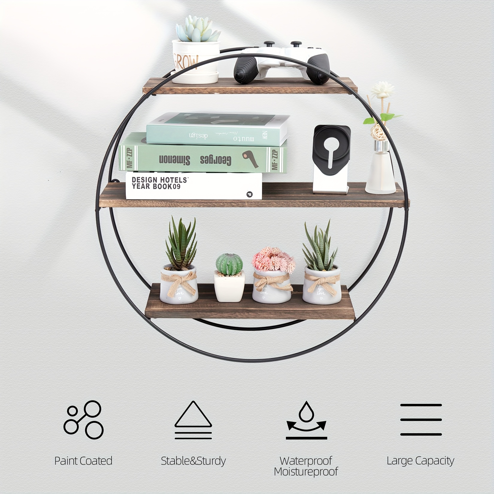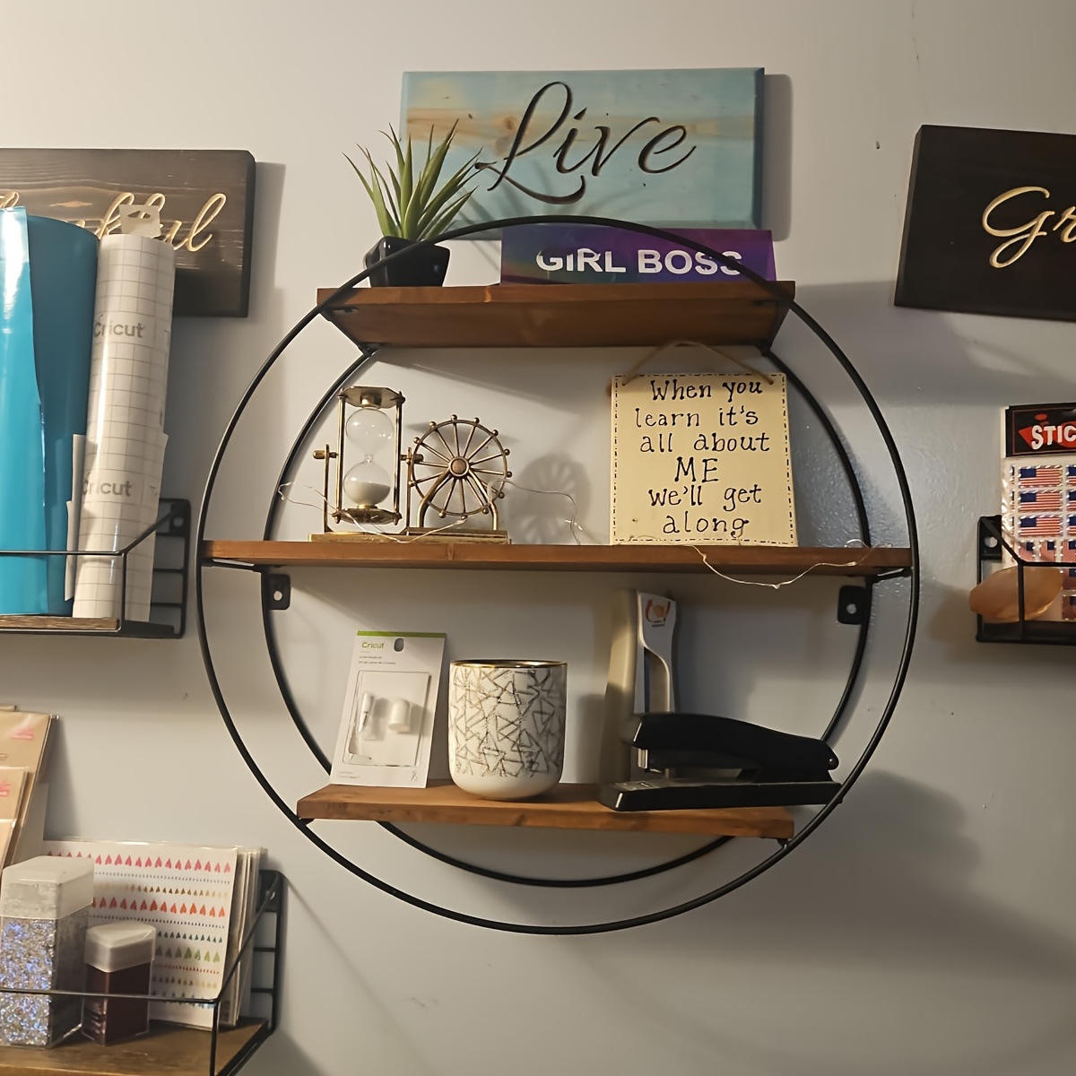 Wall Hanging Storage for Living Room, Bedroom, Bathroom, Kitchen, Office - Decorative Wood Finish Shelf with Metal Accents, Shelf Decor, AESOME